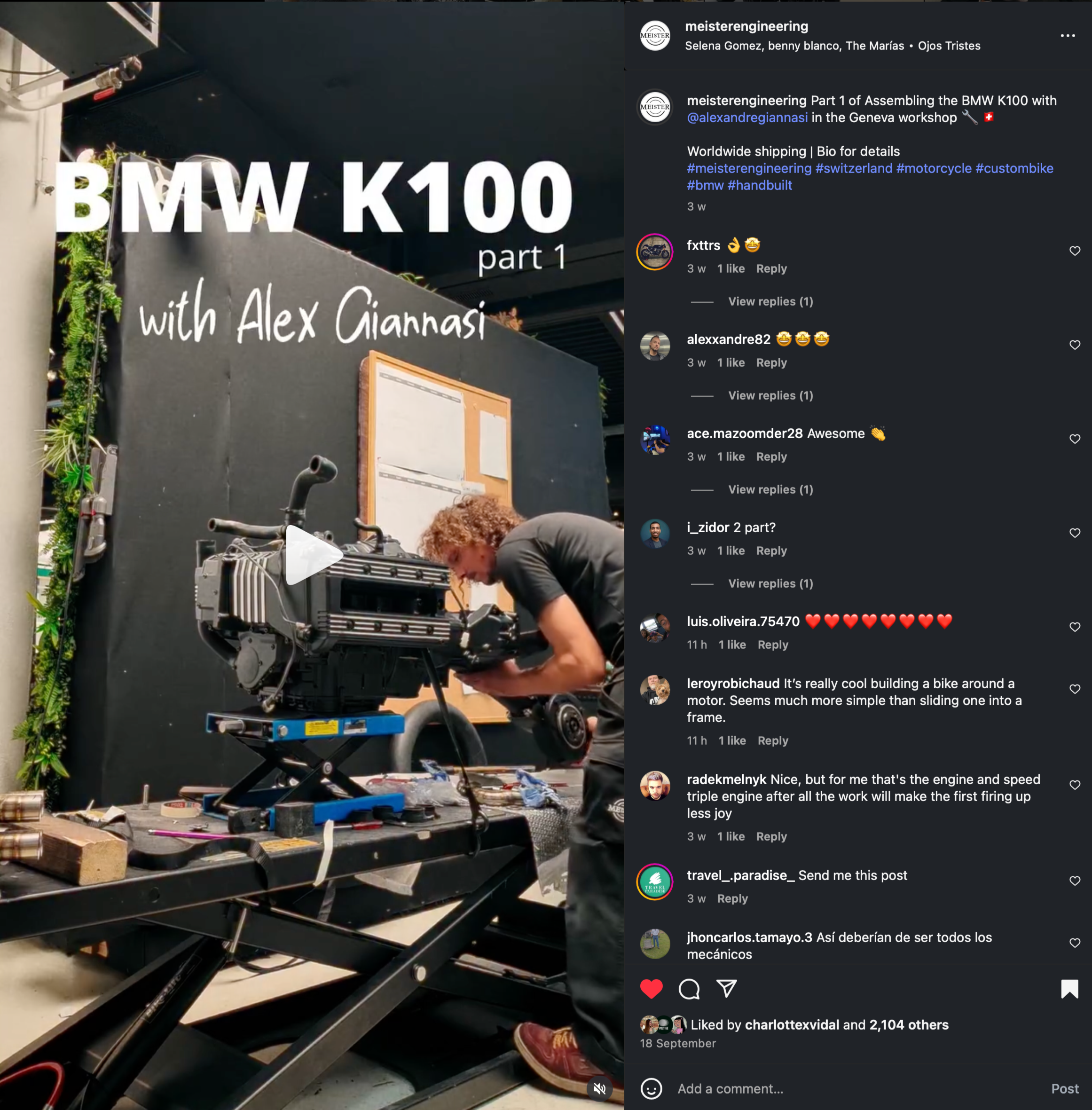 Meister Engineering is known for its precision craftsmanship and custom builds. As part of our full management of their Instagram, we created a series following the build of a bespoke bike from scratch, filmed as authentic employee-generated content. One episode surpassed 150K views and 2k likes, while the others averaged 10-25K with strong engagement, showcasing the impact of storytelling rooted in authenticity and craft.
